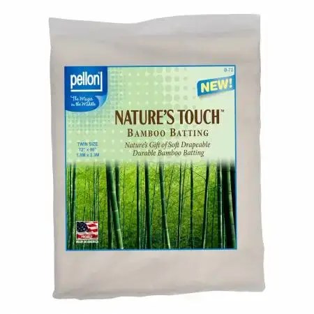 Bamboo Blend Batting w/Scrim is a soft blend of 50% Bamboo / 50% Cotton. It is needlepunched onto a very lightweight sheet of scrim/polypropylene. The scrim is lighter than most in the industry today, thus making hand quilting much easier, while adding strength for hand and machine workers alike. Loft: 1/16in, Shrinkage: 2-3%, Stitch Distance: 8-10in. Once used in a project, this batting is washable by machine or hand and is dry cleanable. Non-toxic, acid-free, and chemical-free.